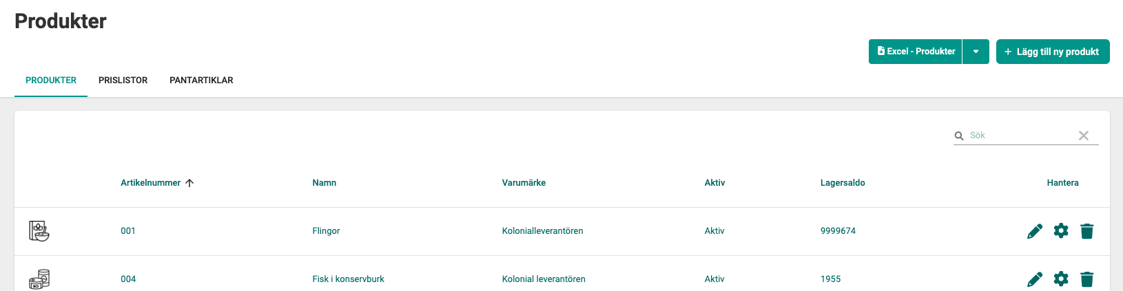 - Uppe i högra hörnet finns knappen "Lägg till ny produkt", klicka på den och skriv in gamla artikelnumret på den produkt som ni vill justera artikelnumret på.