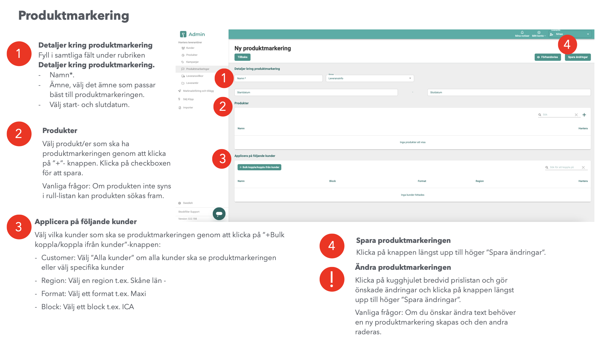 1. När du är inloggad går du in på Produktmarkeringar som du hittar i vänstermenyn.